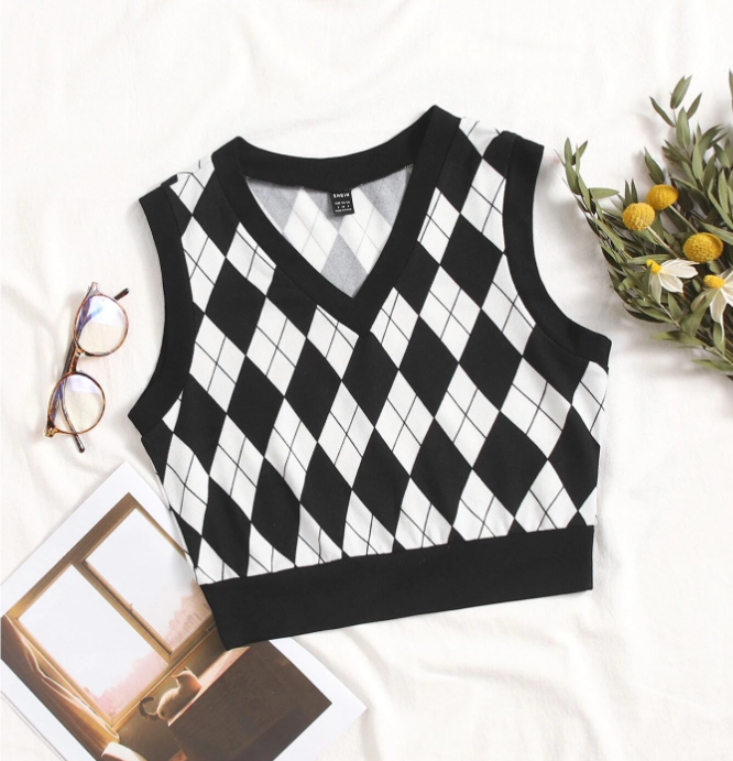 Side patchwork plaid fabric with a diagonal pointy design, fashionable and chic.